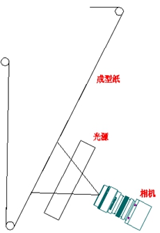 在線(xiàn)中線(xiàn)膠監(jiān)控系統(tǒng)的光源與相幾安裝在成性紙的右下方,保證光源和相機(jī)與成型紙垂直,相機(jī)抓取到成型紙的圖象后傳輸?shù)焦た貦C(jī),由處理軟件對(duì)成型紙的圖象進(jìn)行處理,以判定中線(xiàn)膠的寬度與連續(xù)性情況,光源強(qiáng)度的調(diào)節(jié)由光源控制器完成。